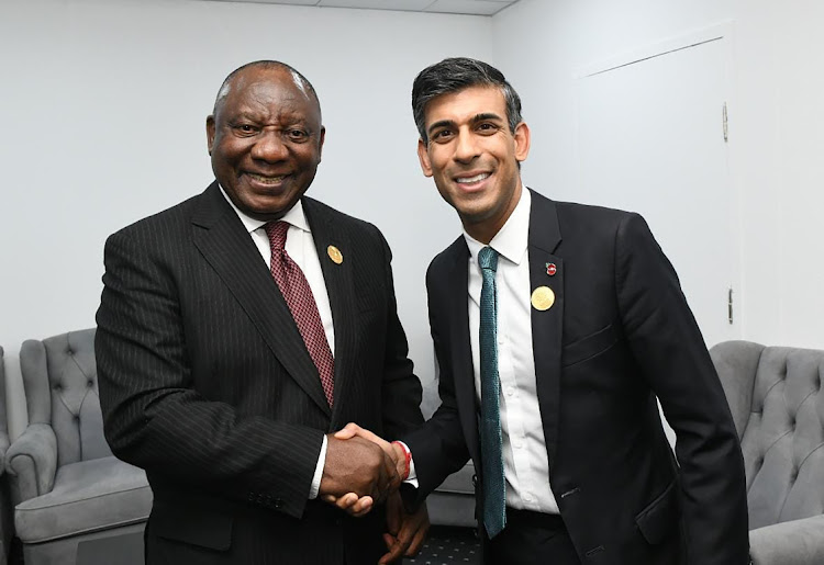 South African President Cyril Ramaphosa with British Prime Minister Mr Rishi Sunak.
